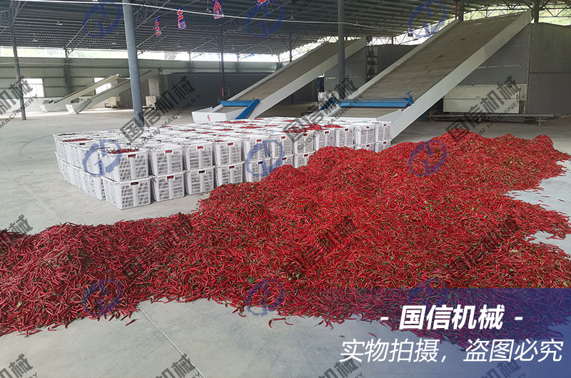 國信網帶式辣椒烘干機是按國家環保要求和辣椒干燥原理研制的熱風干燥設備,可根據生產需要對網帶速度、溫度和濕度進行調節,以滿足對不同含水率、不同品種的辣椒進行烘干處理。