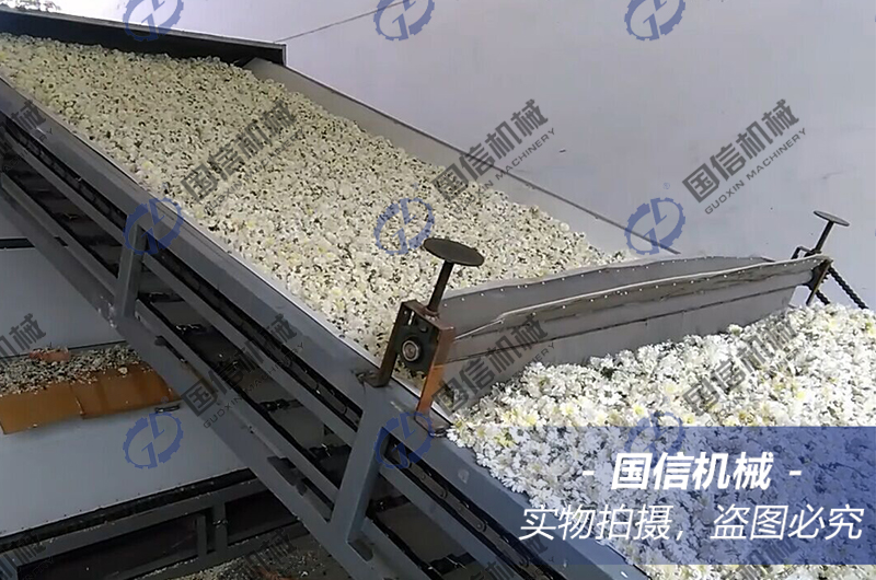 懷菊花的加工工藝一般就是烘干殺菌。新鮮采收的懷菊花可以將它們通過上料坡送入網帶式烘干機進行連續烘干,鮮菊花從進料口到烘干好出料,只需要3-4個小時的時間,采取傳統的干燥設備需要十個小時,可以說這種帶式菊花烘干機大大提高了工作效率。 武陟縣是懷菊花的主產地,今年種植面積一萬兩千畝,一般5公斤鮮懷菊花能出一公斤干菊花,產地價格每公斤干菊花100元左右。干菊花產量今年能夠達到兩千四百噸,產值達到一億九千萬元,對農業增效農民增收起到很好地帶動示范作用。