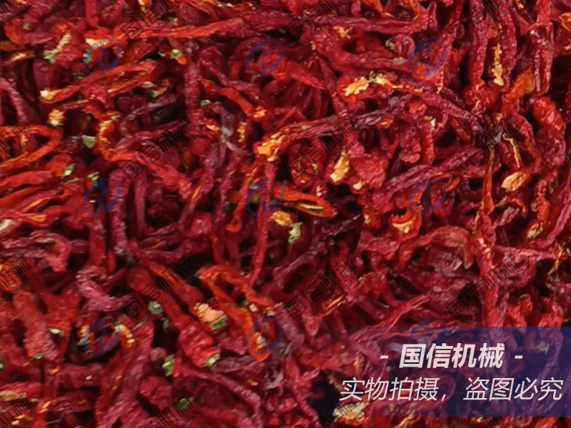 3.后期降溫熟化階段(55-58℃): 在烘干尾聲,當含水率降至15%左右時,再次調低溫度,進行緩慢收干。此階段有助于辣椒油泡的風味物質充分熟化與保留,使烘干后的辣皮子香氣更加醇厚濃郁,而非簡單的“生辣”。