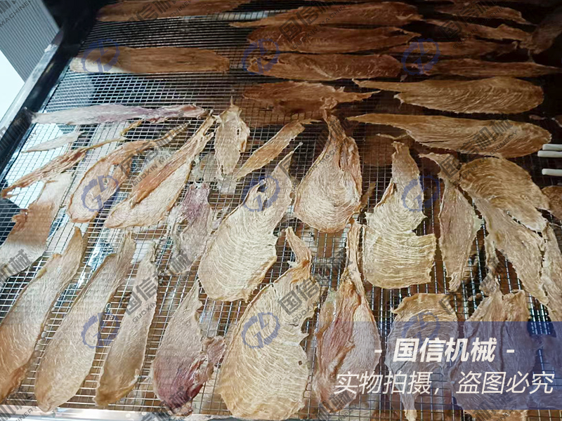 后期收干階段(55-58℃): 持續2-3小時,濕度降至30%以下。低溫緩烘使水分均勻降至安全標準(含水率≤12%),并進一步固話風味,確保成品色澤自然、肉質緊實。
