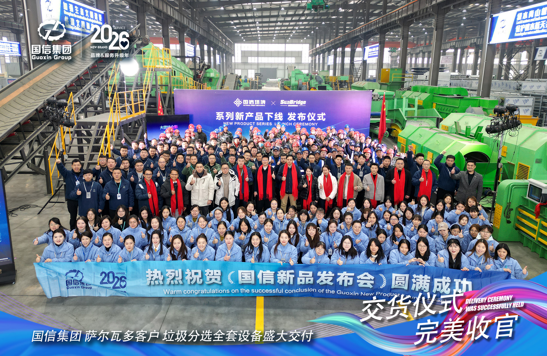 2025年1月29日,國信集團第三代智能垃圾分選設備下線儀式暨首批產品交貨儀式在集團智能制造基地隆重舉行。本次活動著國信在固廢處理裝備領域的技術創新與產業化應用邁上了全新臺階,也再次印證了其“研發一代、交付一代”的堅實承諾與高效執行力。
