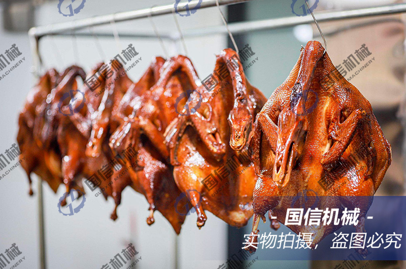 導讀:板鴨烘干工藝以及板鴨烘干機使用方法:將擦干之鴨體加以整型,將其掛入竹杠上,放入空氣能板鴨烘干房。