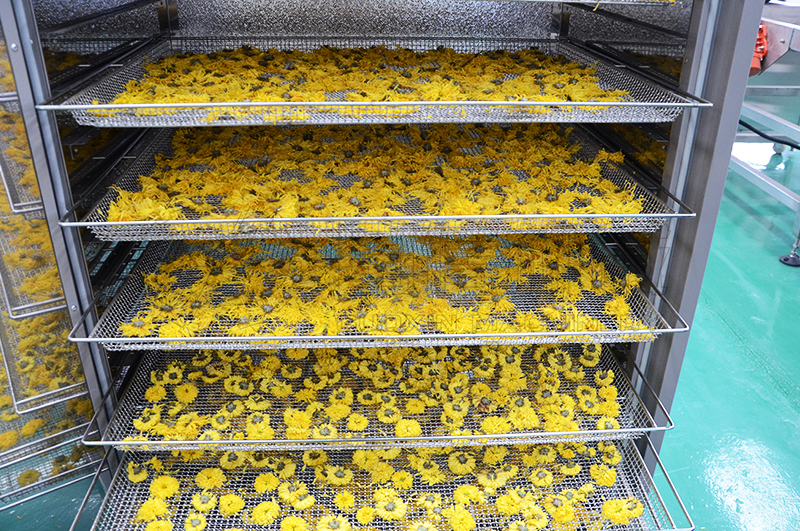 導讀:菊花、金絲皇菊等花類烘干為保證自身的香味、營養成份不被破壞,且方便后期使用和存儲效果,建議在半開季開始收集采摘,進行烘干作業。
